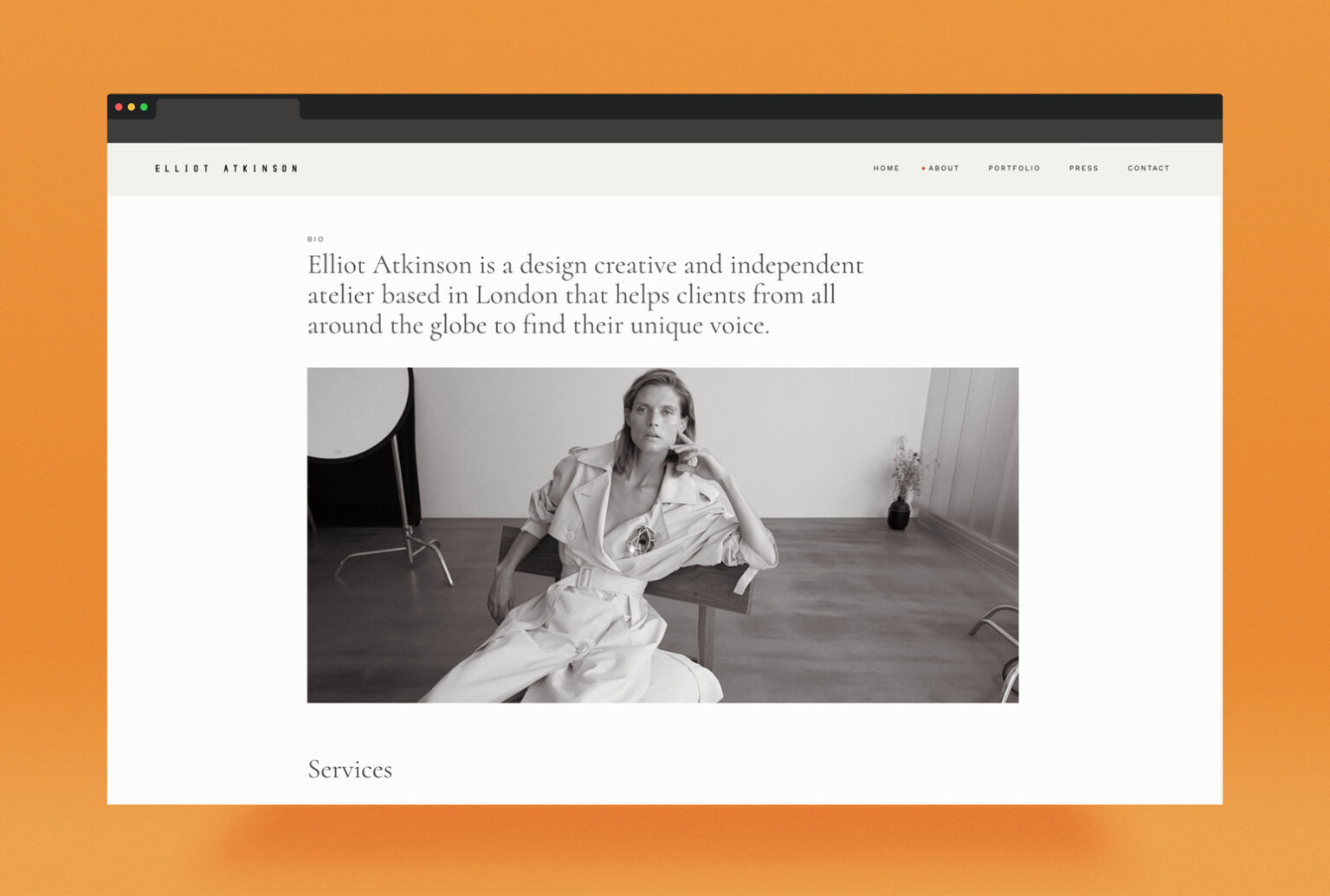 Elliot Atkinson is a fashion designer and independent atelier. He also happens to be my brother and since 2007 I’ve supported his portfolio website design and build requirements.